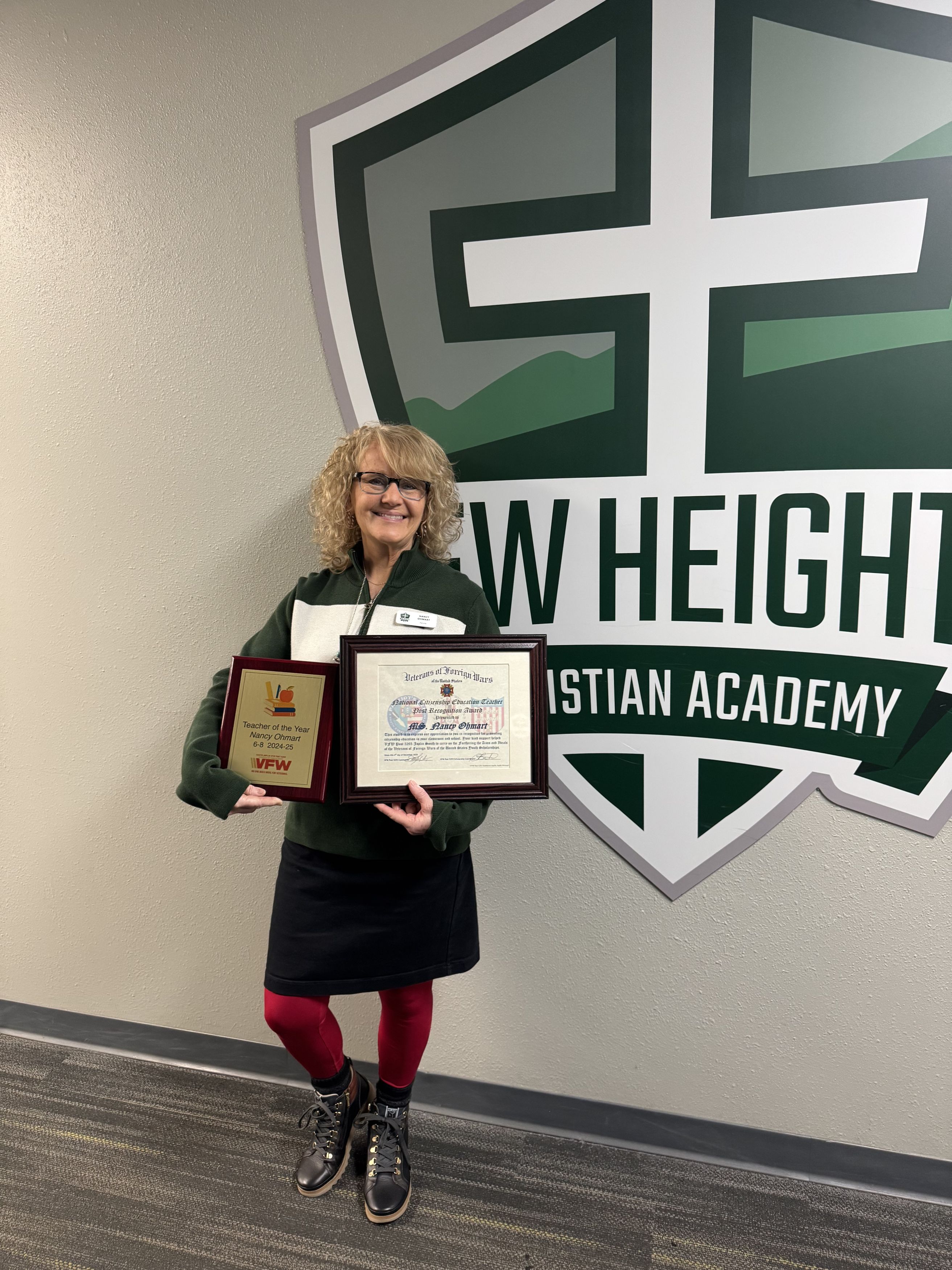 Mrs. Ohmart Receives Teacher of the Year award from local VFW
